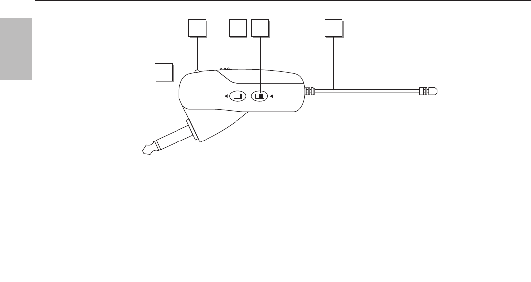 1: Plug - Insert this standard 1/4” plug into your electric guitar or electric bass. Note that the angling of the plug is different in the AF1
